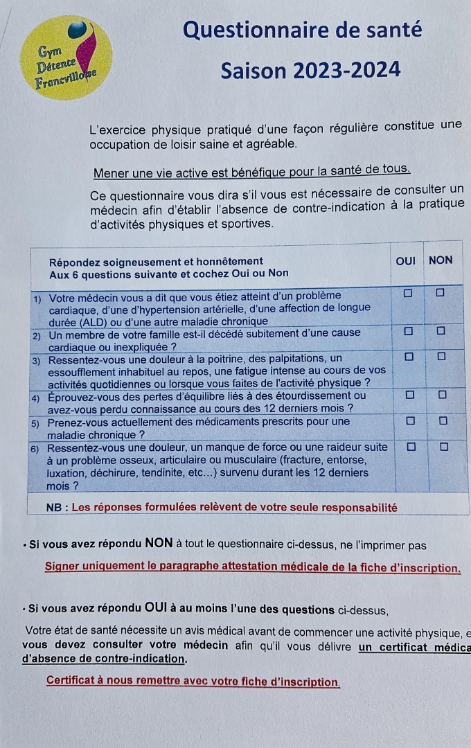 Questionnaire de santé à remplir pour s'assurer que vous êtes prêt.e.s à venir danser avec nous !