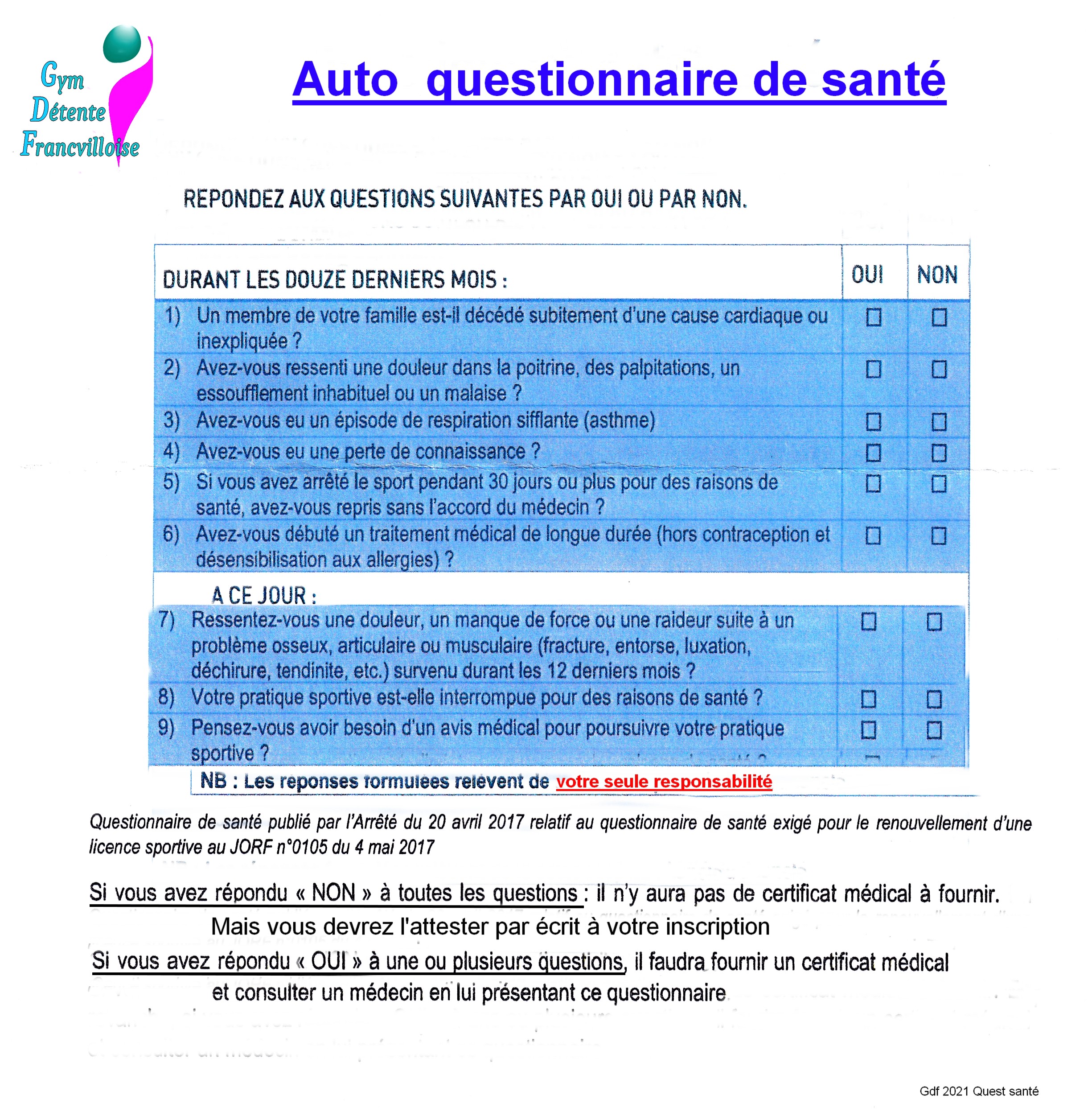 Auto questionnaire de santé pour licence