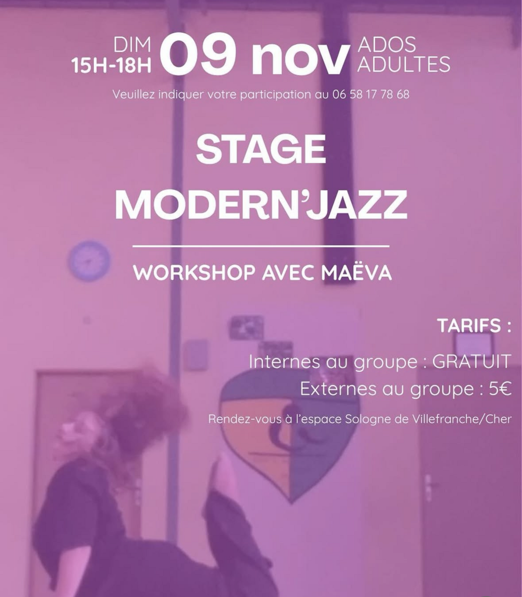 N'oubliez pas de vous inscrire au stage de danse du 9 novembre prochain avec Maëva !